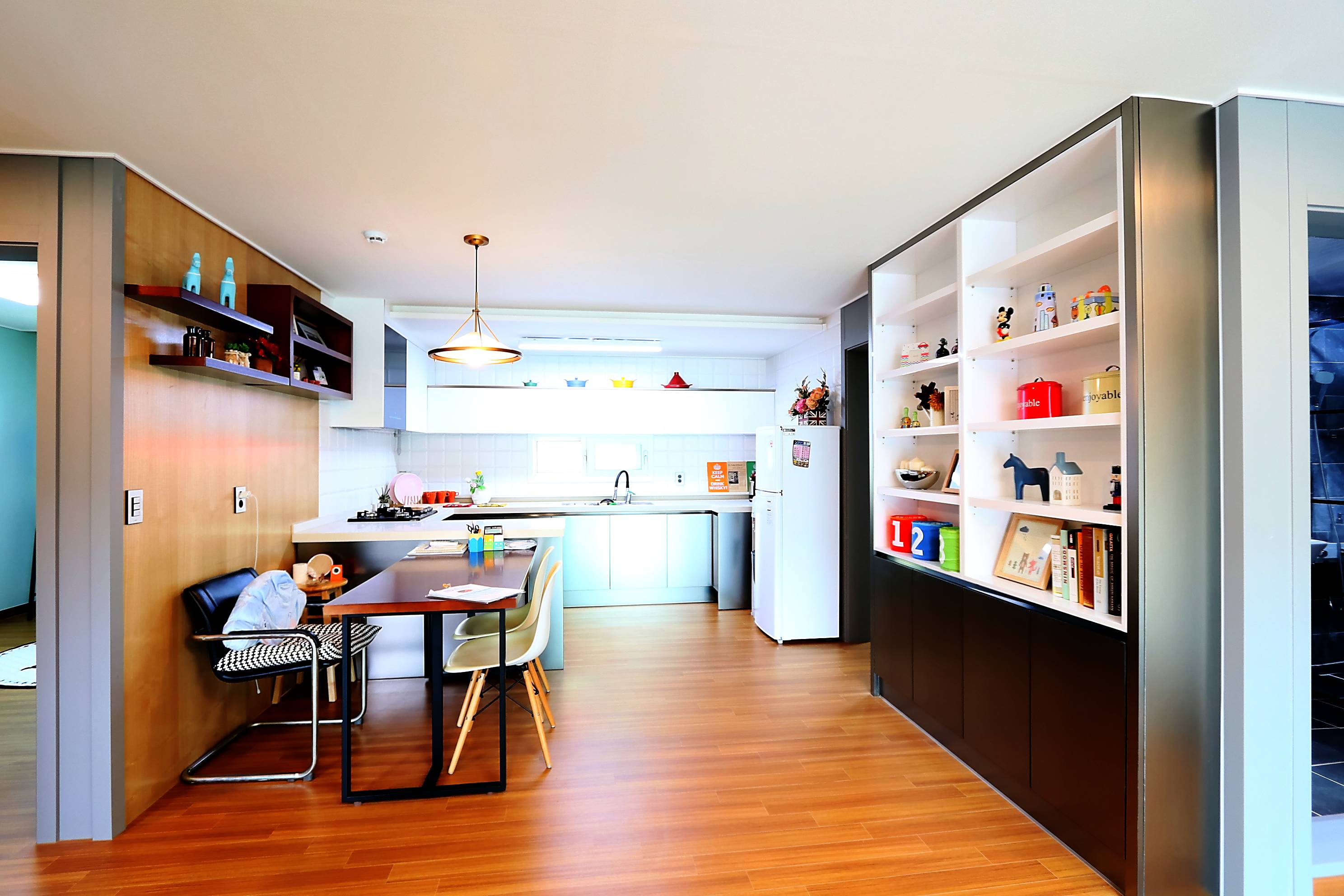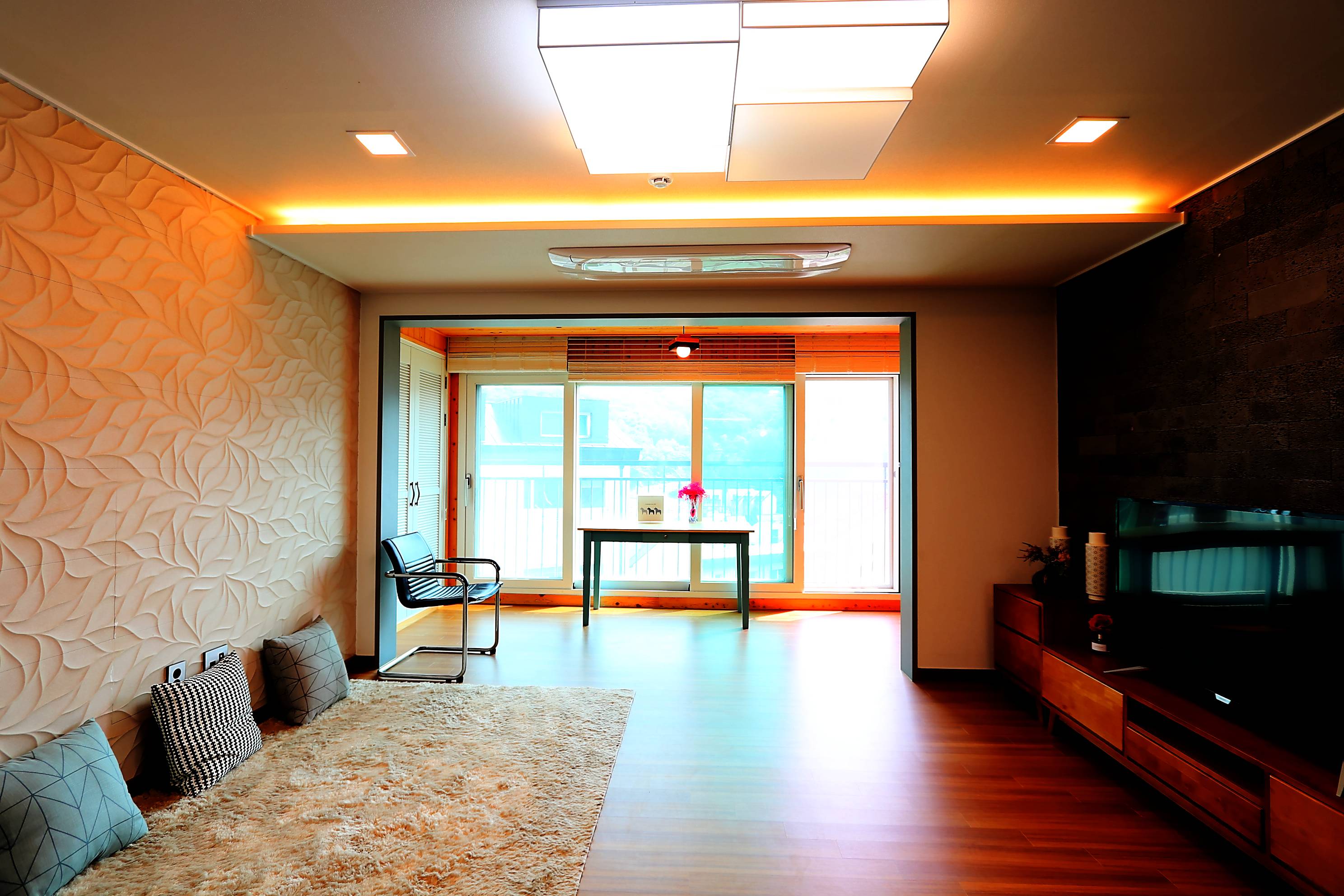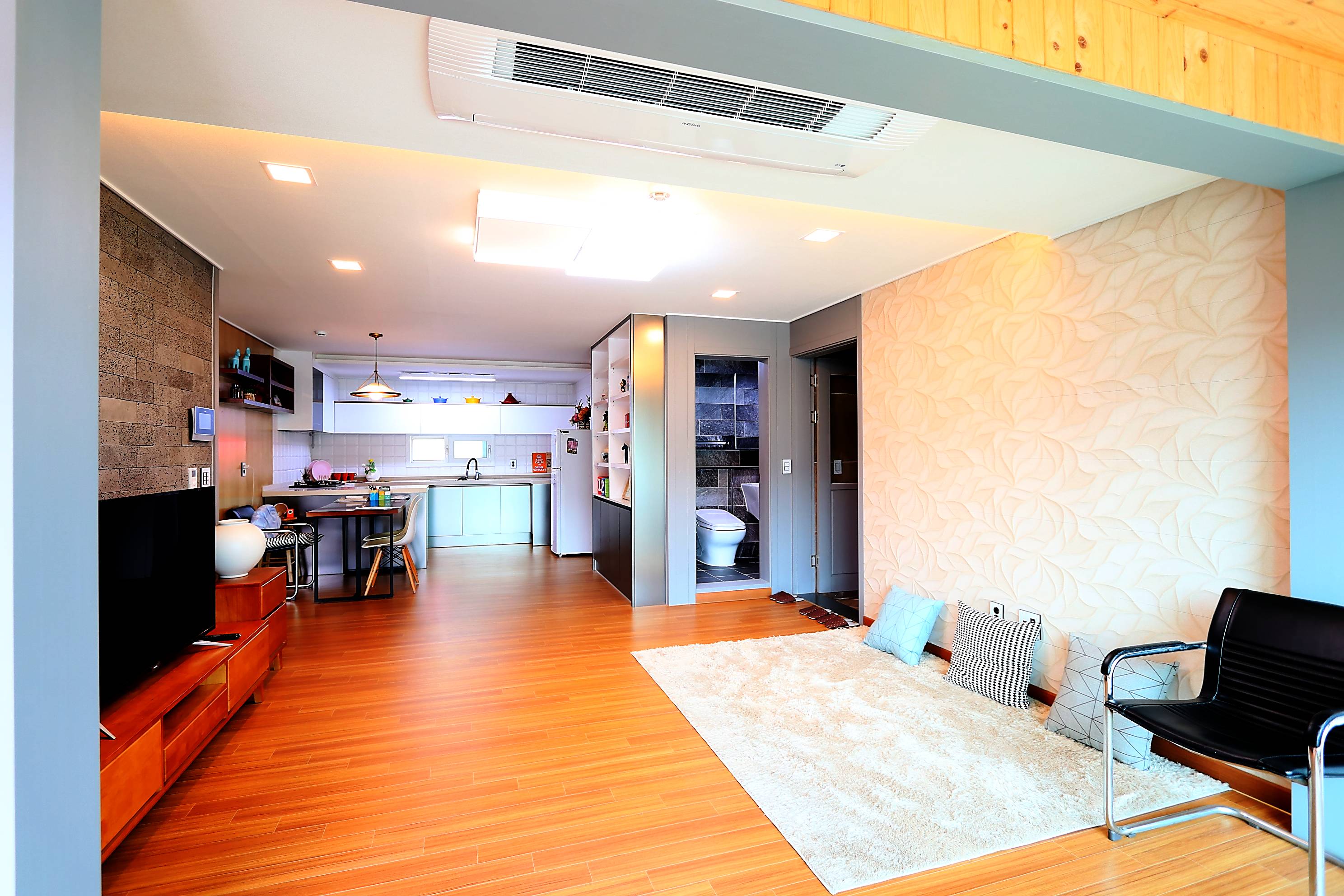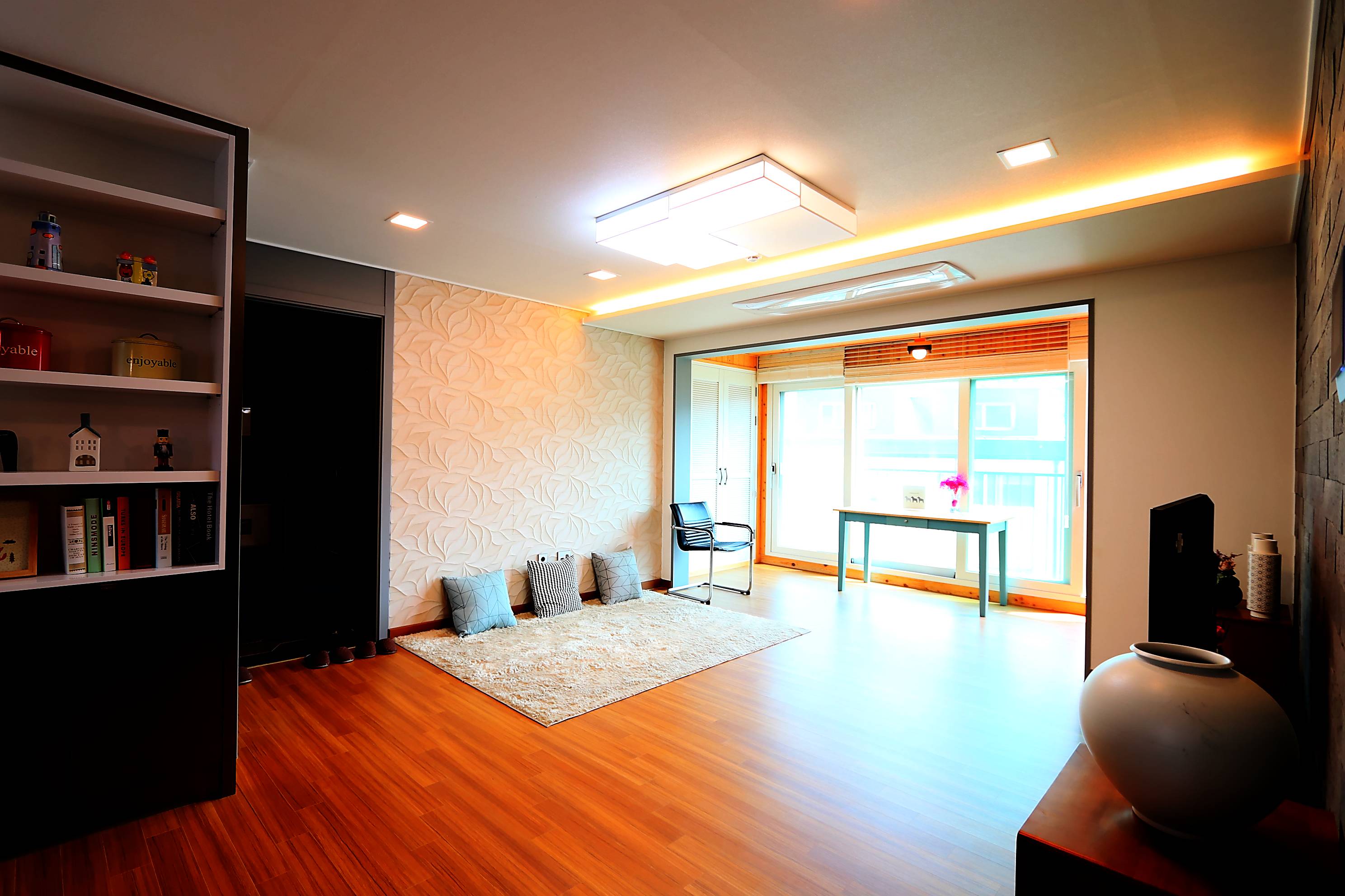 바닥은 강화마루로 시공이 되었고, 아트월쪽은 전체적인 공간을 만들기 위해 식민들에게 세금을 부과할 이유가 있었어요