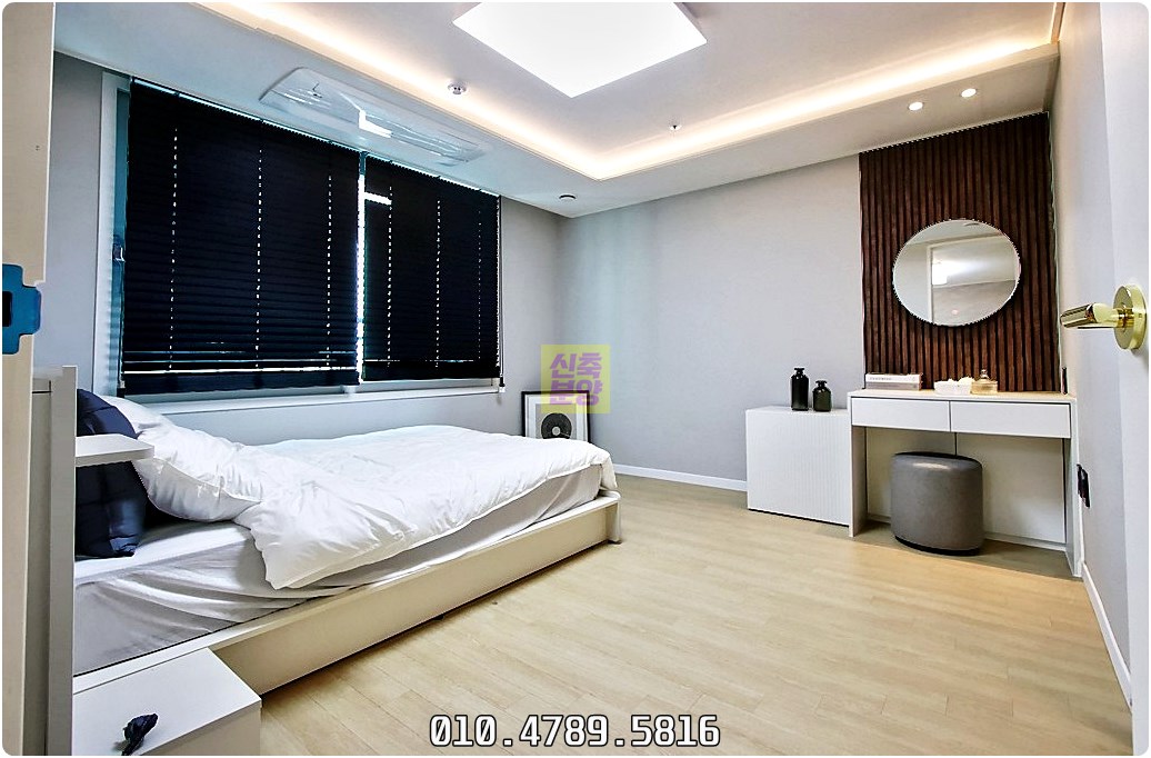 우선 안방은 부부가 사용하기에 넉넉한 크기로, 침대는 물론 욕대와 수납장도 갖출 수 있어요.