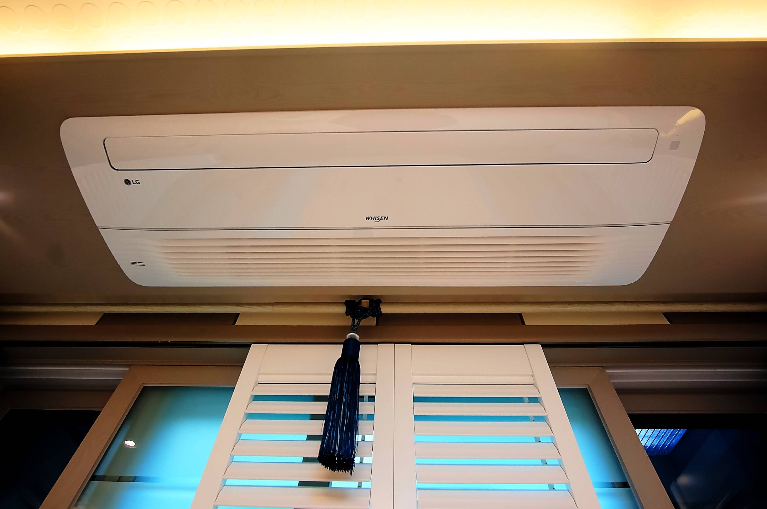 거실천장에 설치된 에어컨의 전경입니다.