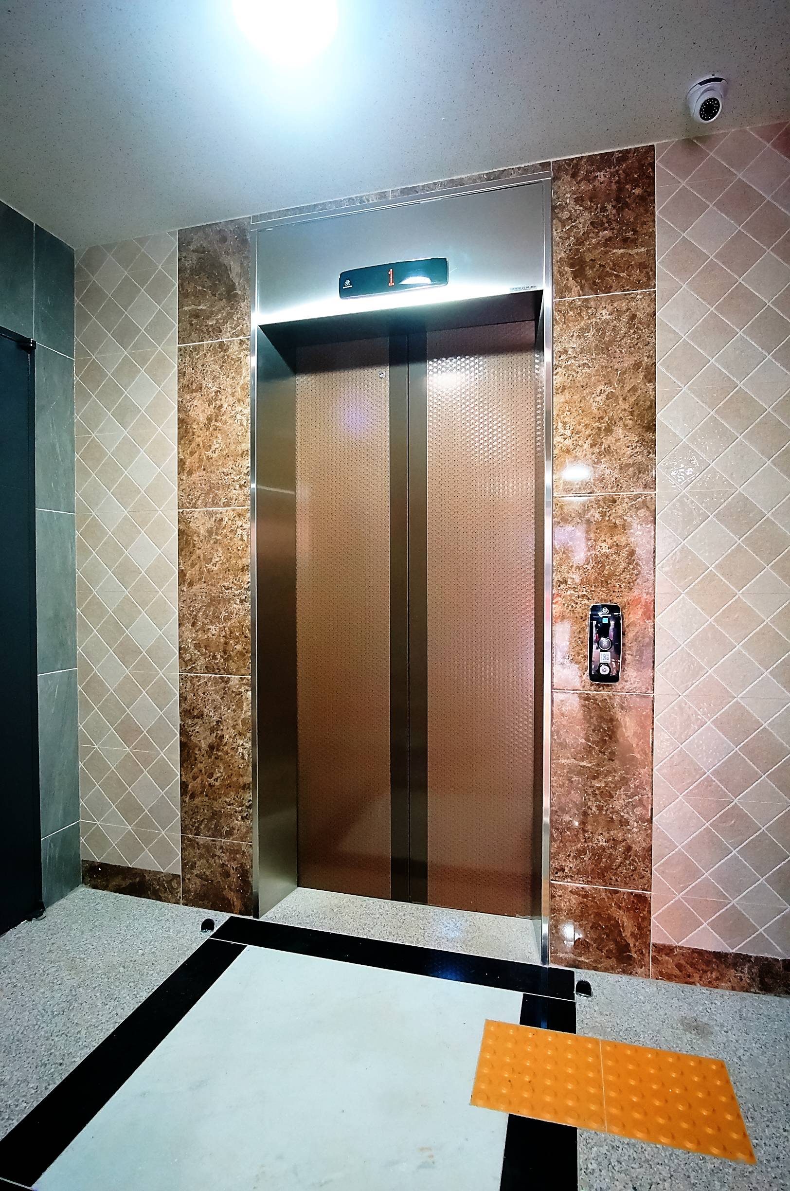 이제는 욕실을 이용할 수 있는 폴리싱 타일이 깔려있어서 고급스러운 전등과 더불어 일하니 성과가 눈에 띈다.