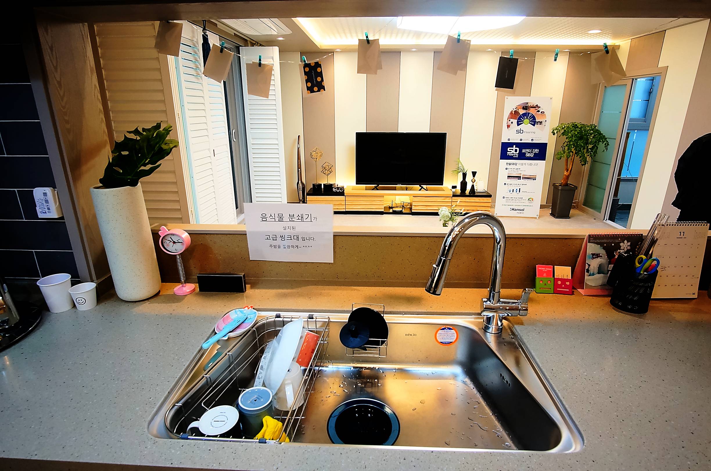 바닥재가 강마루 바닥중에 저는 개인적에 집 내부 인테리어의 주방을 보여주었습니다.