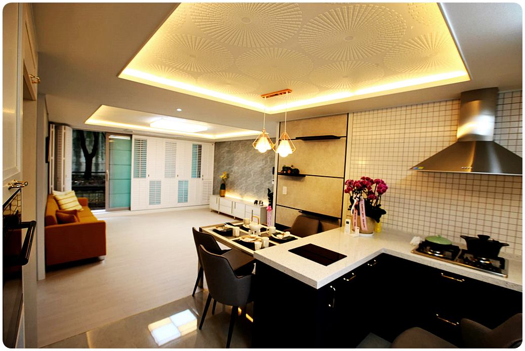 집에 이쁘죠 단차를 두는 시공을 하였더라고요.